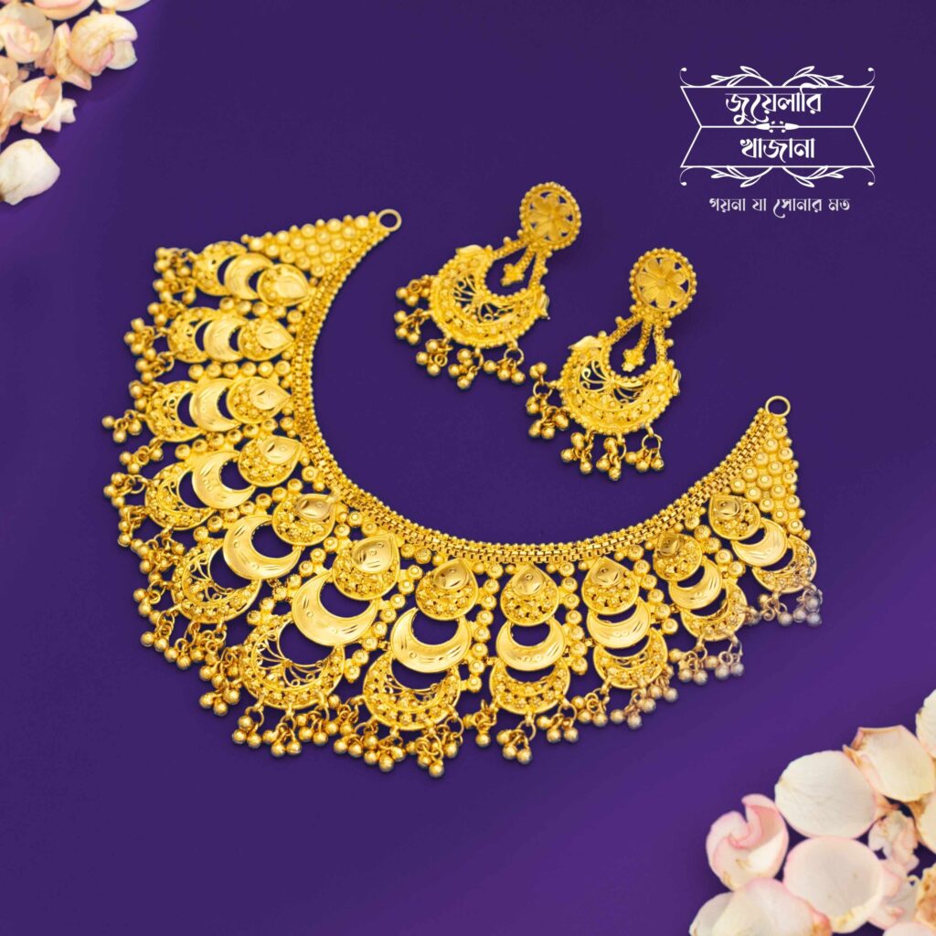Premium Gold Plated Troyee Necklace with Earrings