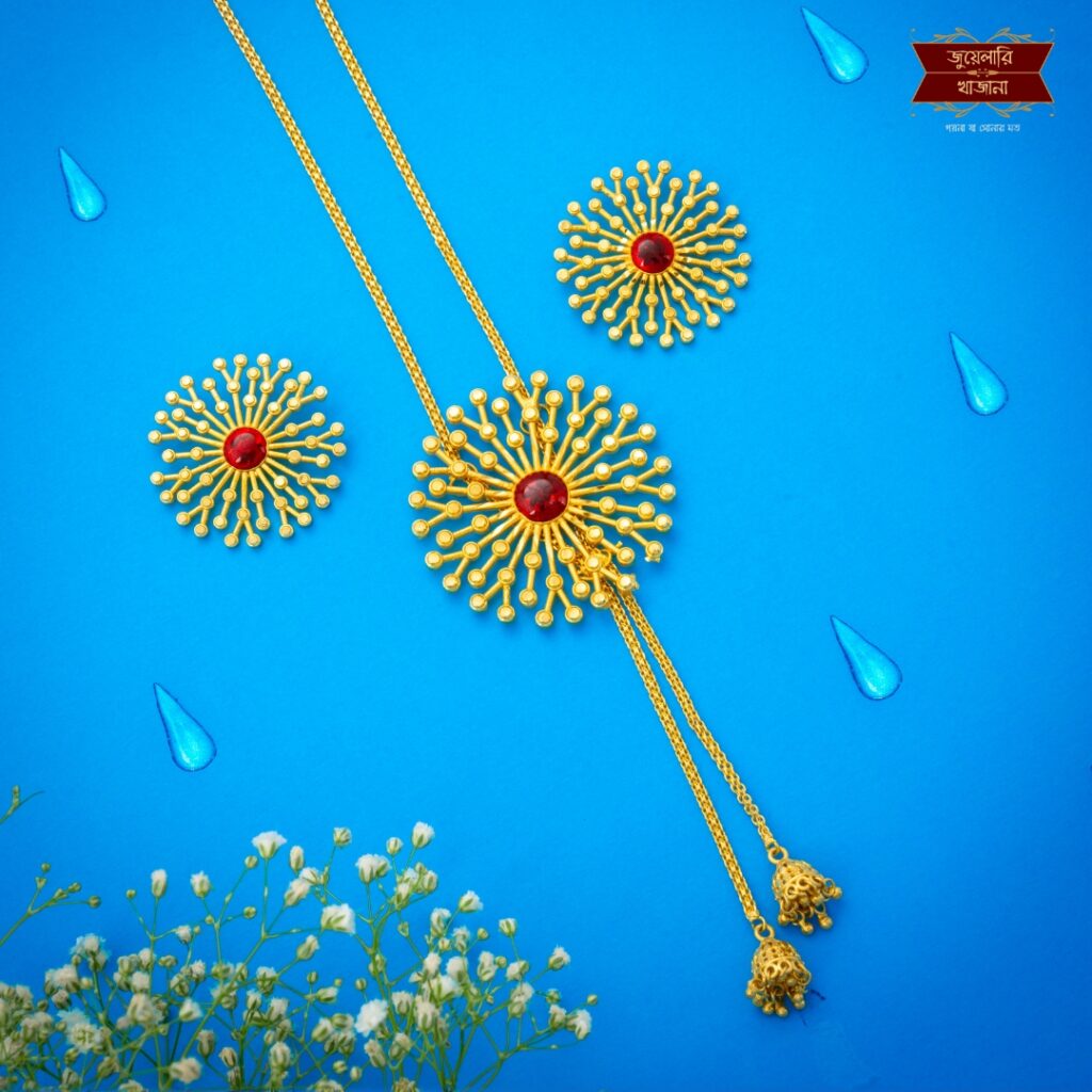 Premium Gold Plated Aranya Chain Pendant with Earrings