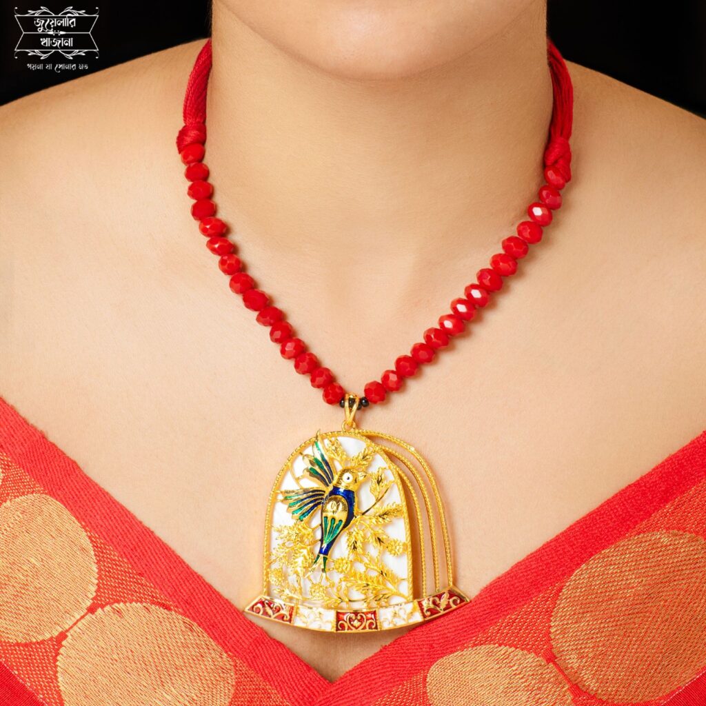 Premium Gold Plated aesthetic bird pendant on shell with Earrings