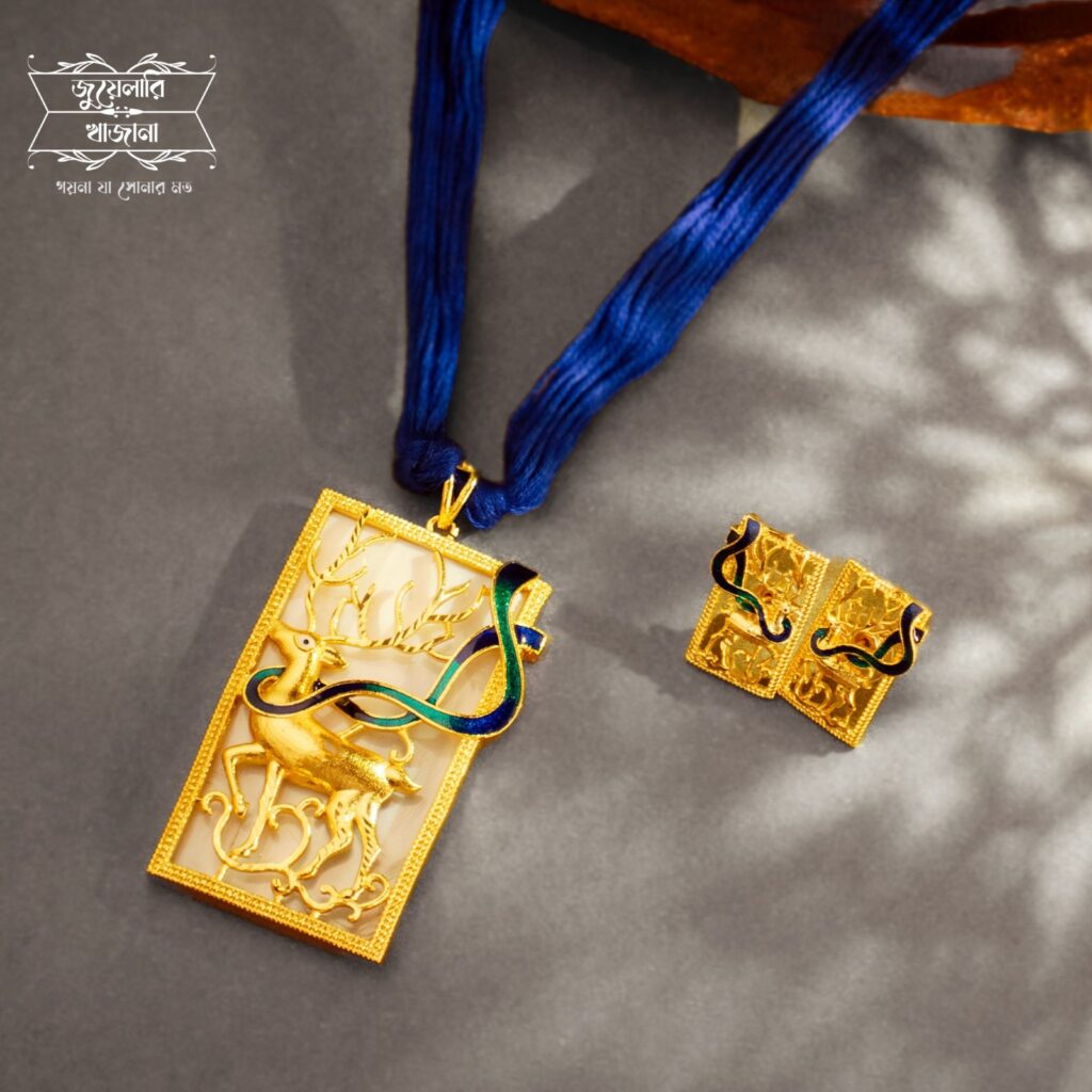 Premium Gold Plated Abstract Deer Pendant with Earrings