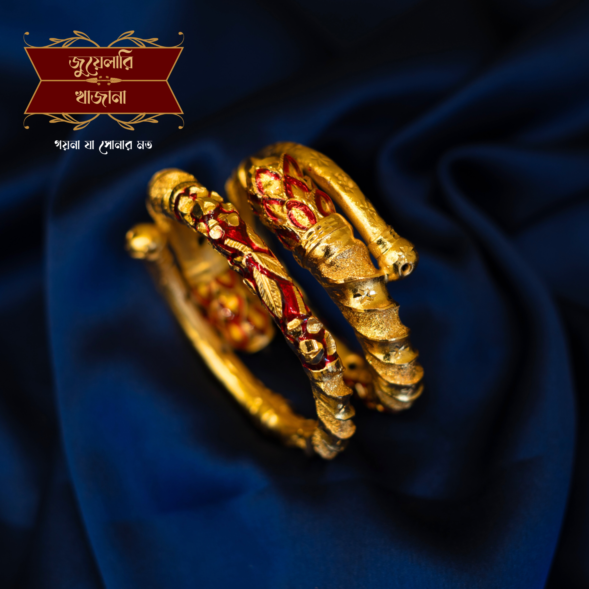 Adorn your wrist with the resplendent beauty of our Premium Gold Plated Minakari Anarosh Bala—a bangle that harmoniously blends opulence and intricate craftsmanship. This exceptional jewelry piece features meticulous Minakari work, specifically showcasing the exquisite detailing of pineapple skin patterns, all accentuated by the luxurious touch of gold plating.