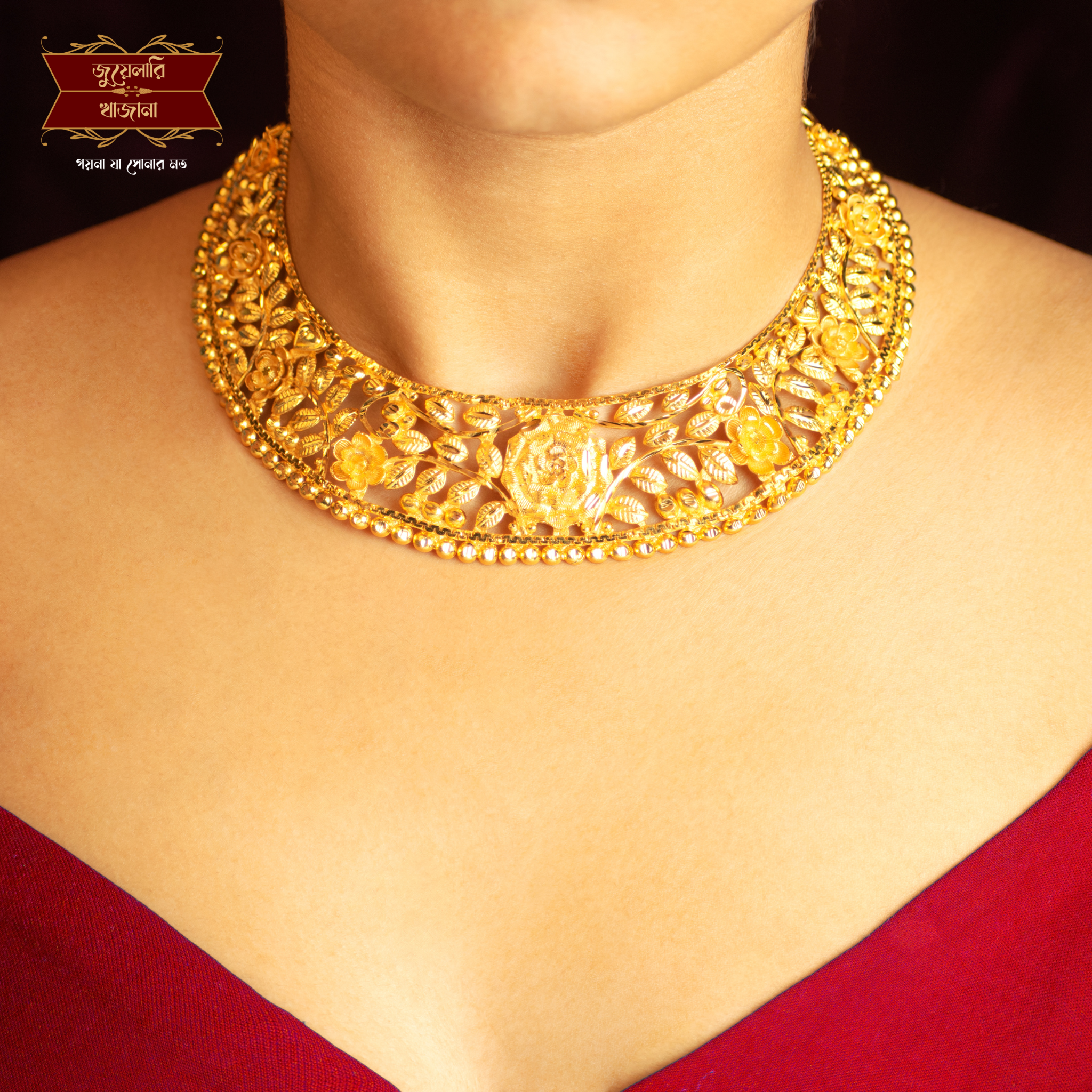Drape yourself in sophistication with the Stylish Gold Plated Pradip Chatai Necklace. The intricate chatai design and matching earrings create a timeless and elegant ensemble for various occasions.