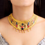 Presenting our Premium Gold Plated Cuff Choker adorned with exquisite Minakari work, a blend of elegance and cultural richness. Crafted with precision and plated in radiant gold, this choker features intricate Minakari detailing that exudes sophistication and charm. Its cuff design adds a modern twist to traditional aesthetics, making it perfect for special occasions or everyday wear. Elevate your style with our premium accessory, a symbol of timeless beauty and refined craftsmanship. Experience the allure of fine artistry with our Premium Gold Plated Cuff Choker in Minakari Work.