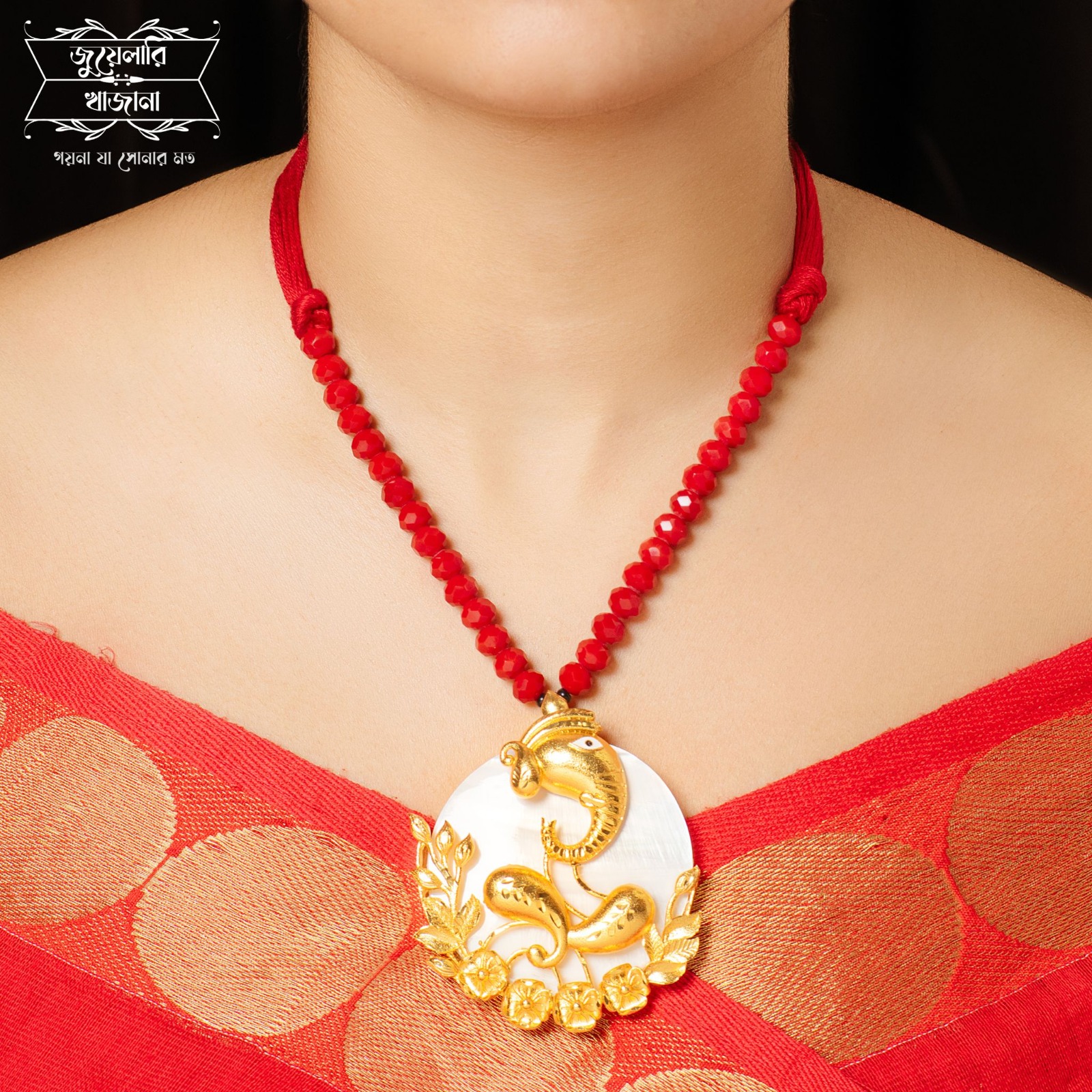 Product Description: Premium Gold Plated Ganesha on Shell Pendant