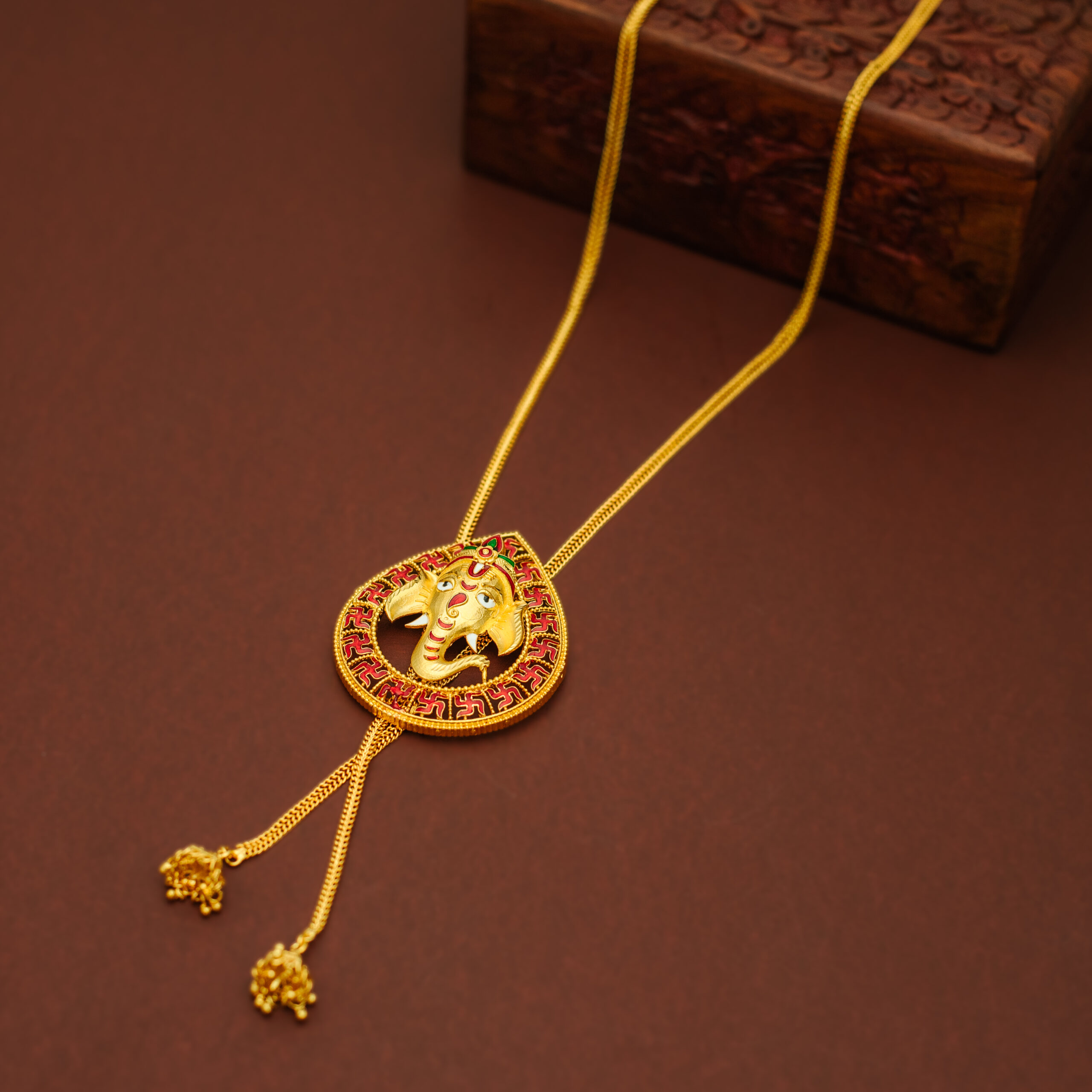 Add a touch of spirituality and elegance to your jewelry collection with our Premium Gold Plated Ganesha Tie Chain. This beautifully crafted tie chain features an intricately designed Ganesha pendant, symbolizing wisdom, prosperity, and good fortune. Perfect for festive occasions, religious ceremonies, or everyday wear, this chain combines tradition with style.