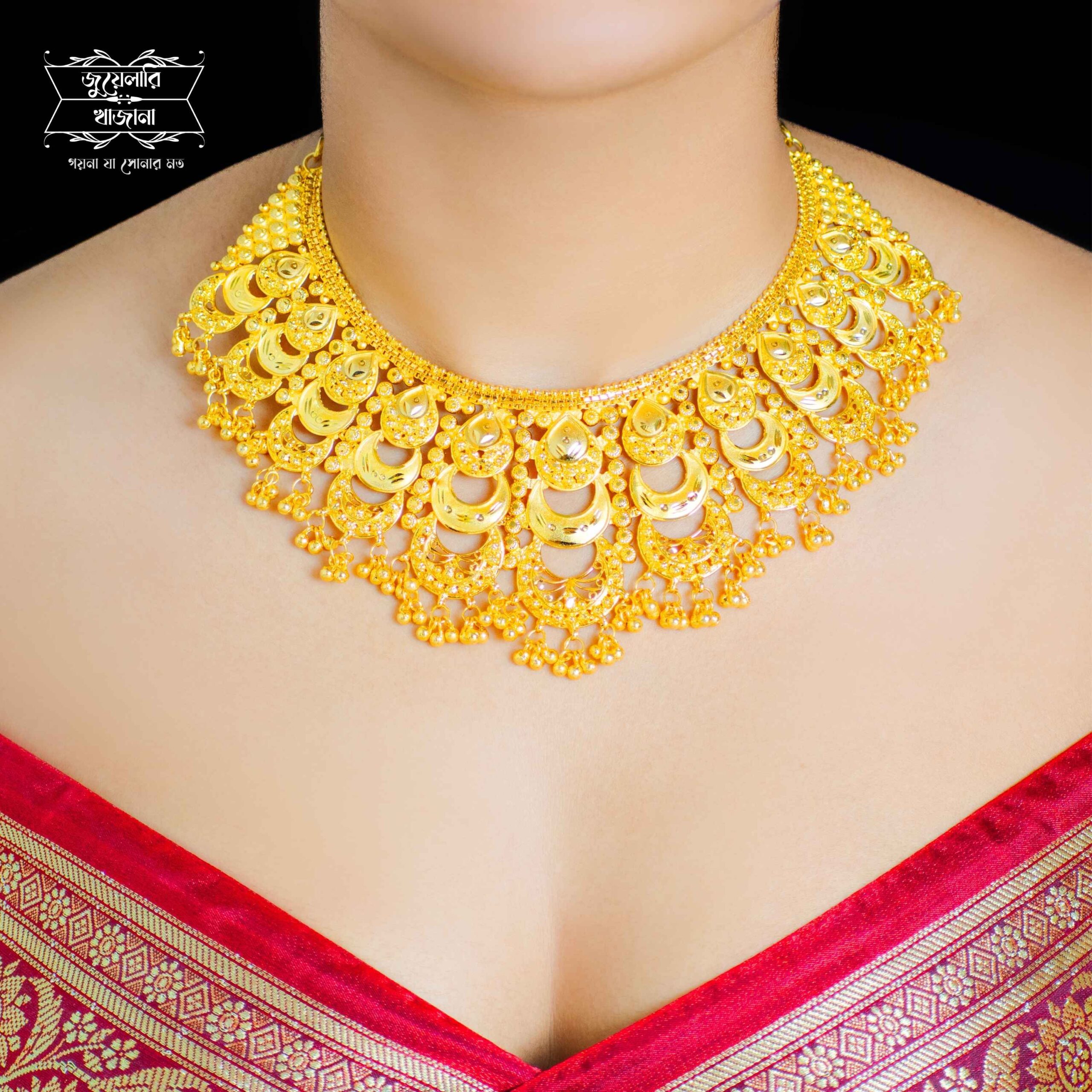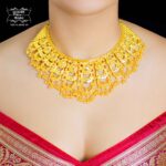 Drape yourself in timeless beauty with this Premium Gold Plated Maher Necklace, a masterpiece inspired by traditional Bengali artistry. Known for its bold design and rich craftsmanship, this Maher-style choker necklace replicates the grandeur of real gold jewellery with stunning precision. Perfect for brides and festive occasions, this necklace speaks of elegance, heritage, and cultural pride.