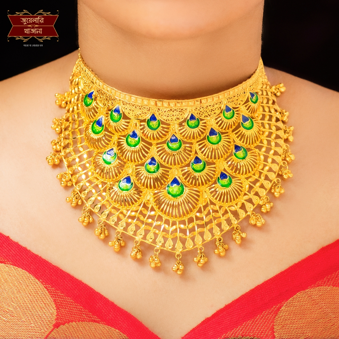 Enhance your style with our Premium Gold Plated Peacock Feather Cuff Choker with Earrings. This exquisite set features a beautifully designed cuff choker and matching earrings, inspired by the elegance of peacock feathers. Perfect for weddings, festive occasions, or special events, this set adds a touch of luxury to any outfit.