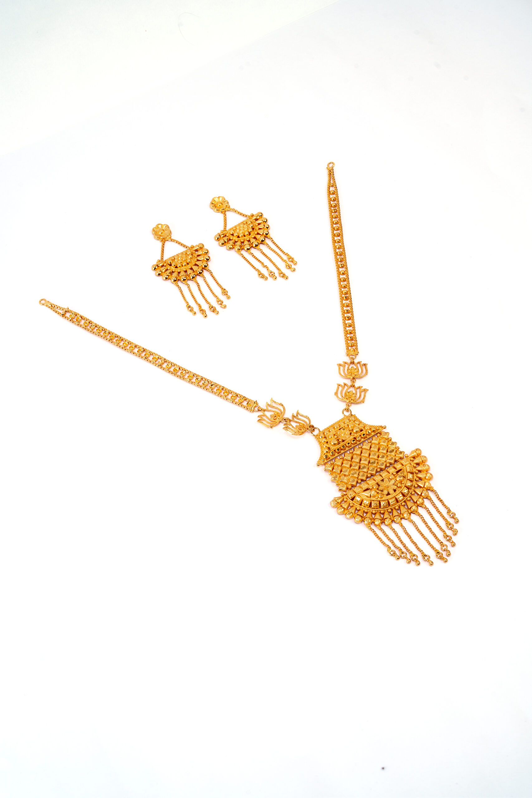 Stylish 24K Gold Plated Bridal Floral Sitahar with Earrings