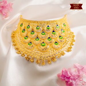 Premium Gold Plated Peacock Feather Cuff Choker with Earrings
