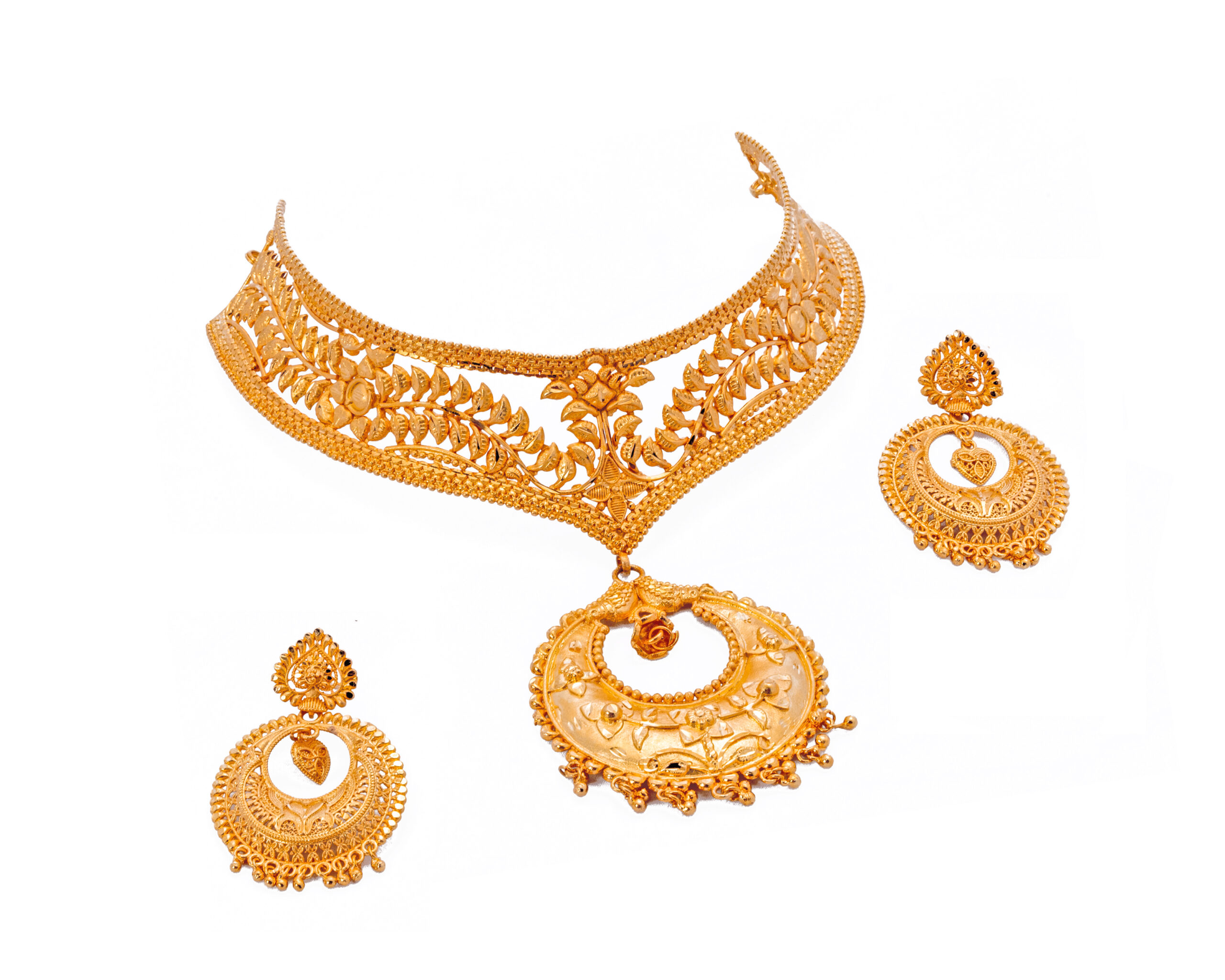 Make a bold fashion statement with the Trendy Kanbali Necklace. The unique design and matching earrings add a touch of modern flair, creating an eye-catching accessory for any occasion.